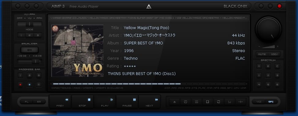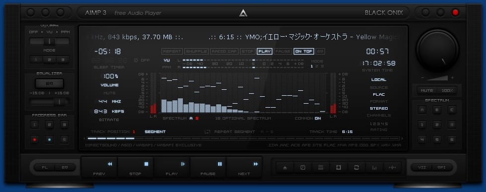 AIMPにはいろんなスキンがあるが、見た目かっこいいBLACK ONIXを使ってみて。