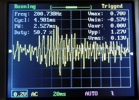 そこで、安価なオシロでPHONO入力LINE上の電圧を確認してみた。