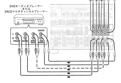 おっさんのPoorAudio(プあオーディオ)のSACDは7.1CHは無理。5.1CHでの出力がMAXなので、図の破線部分の接続はしない。