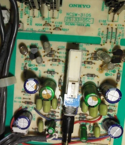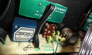 バランスボリュームは交換した250KΩMN型だ。元々、隣の茶色いベークライト?のボリュームだったかと記憶してるが、接点をきれいにしようとしたら、印刷パターンを削りすぎてしまい壊してしまった。代わりに特性のよく似た2000円近くするボリュームを購入した。が。。むなしい結果となる。