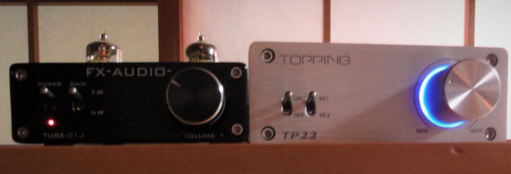 おっさんの2ndAudioシステム(と言うべきか)は、真空管プリアンプ FX-Audio Tube-01J(ラインアンプ)とデジタルパワーアンプ Topping TP22で構成している。