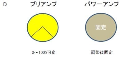 C パワーアンプ側は全開で固定し、プリアンプ側は必要に応じて絞る